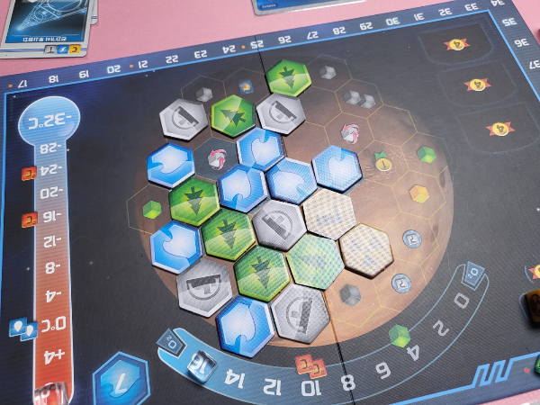 처음엔 당연히 테라포밍 보너스 카드가 많아서 점수 차이가 많이 나고 있었으나